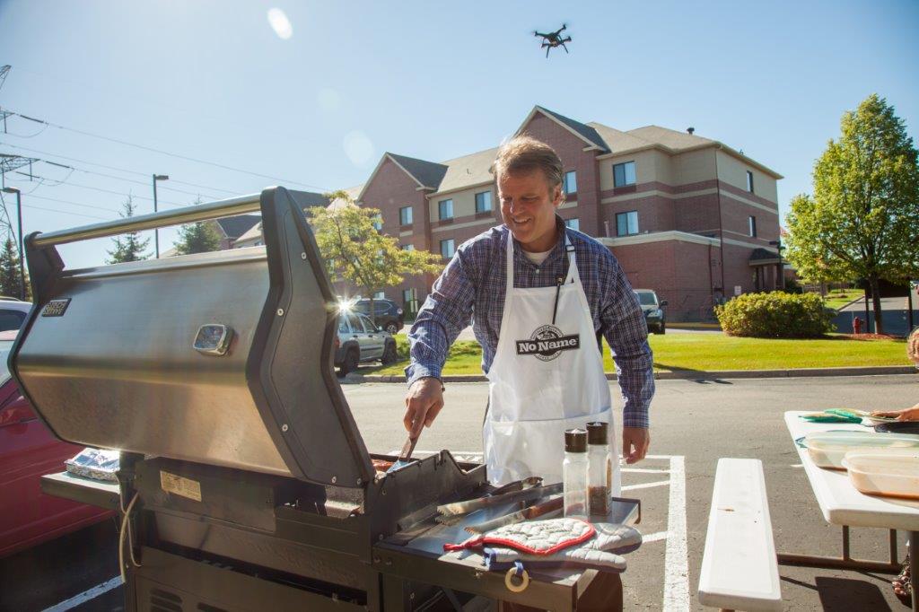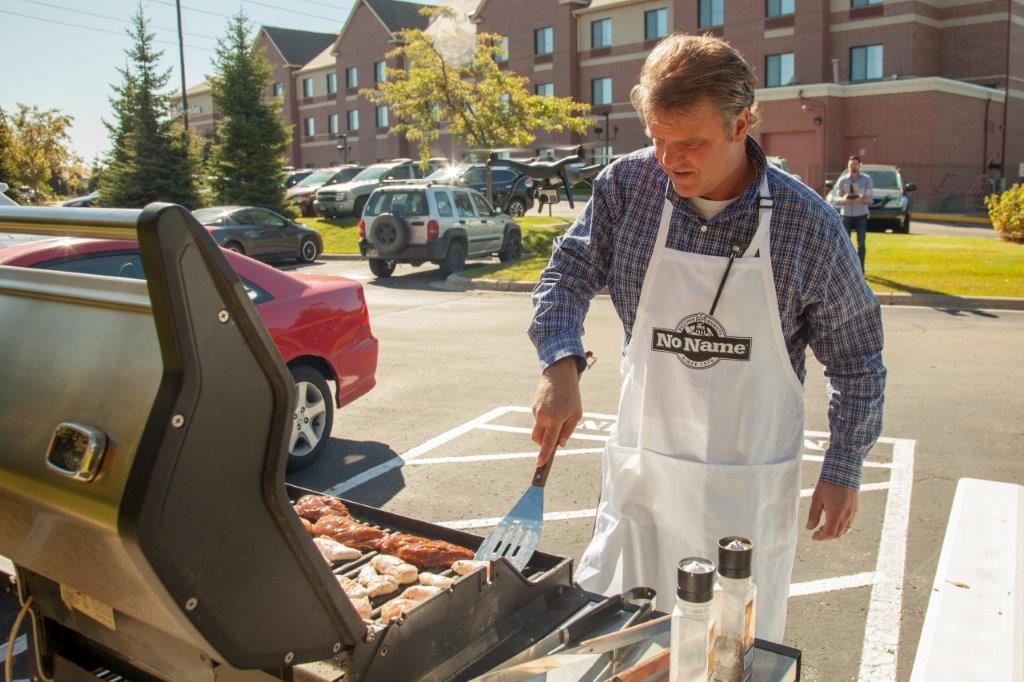 Smoke from the grill greeted the clear blue skies, and a warm fall sun made it a perfect day to grill burgers, jerk chicken and teriyaki chicken strips.