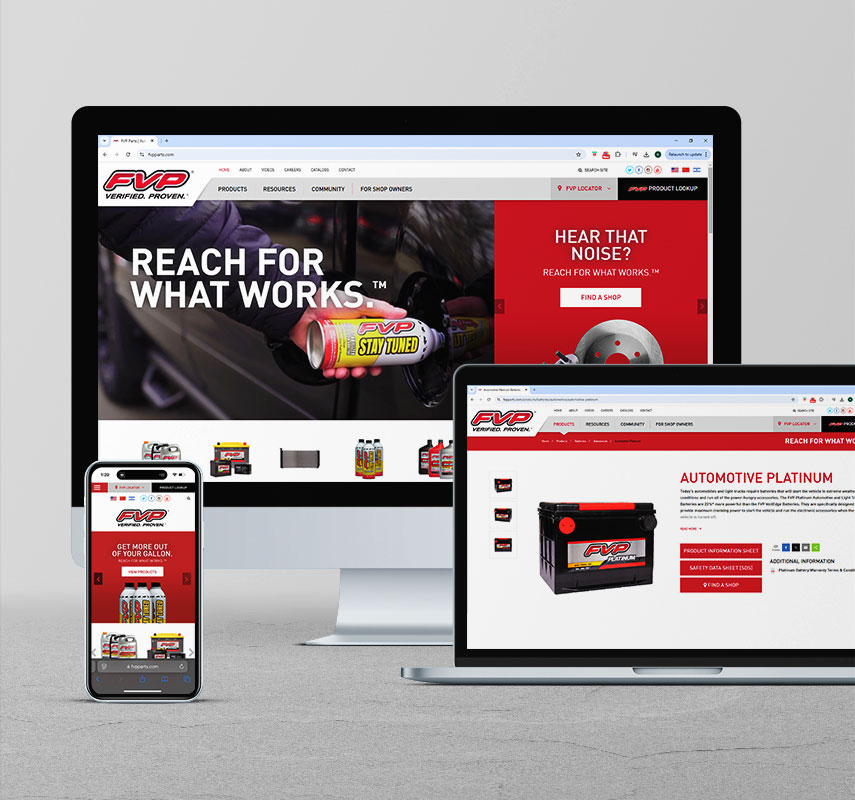 Starting as a supplier of OEM batteries, filters, and radiators, FVP quickly grew into a brand of quality products for all OEM needs. We’ve supported them with a variety of services, including promo items, print, product packaging, apparel design, and photography.